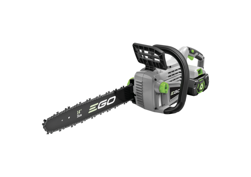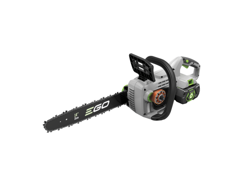 Ausgerüstet mit einem 2,5-AH-Akku und einem Standardladegerät eignet sich der schnurlose Kettensägen-Kit CS1401E perfekt für den Einstieg in das Akku-Gartengerätesortiment von EGO Power+. Ideal zum Sägen von Ästen und mittelgroßen Stämmen bis zu 35 cm. Jeder Schnitt wird mit einer Leistungsstärke ausgeführt, die der eines Benzingeräts ebenbürtig ist. Mit dem mitgelieferten 2,5-AH-Akku wiegt das Gerät nur 5 kg. Bei einer vollen Batterie und einer Kettengeschwindigkeit von 13,5 m/s sind 130 Schnitte möglich. Das Standardladegerät lädt den Akku in 50 Minuten wieder auf. Dieser kann in jedes andere Gerät von EGO Power+ eingesetzt werden und ist deshalb vielseitig und umweltfreundlich. Die werkzeuglose Kettenspannung macht das Einrichten und Einstellen der Kette einfach. Das automatische Schmiersystem (Ölbehälter von 150 ml) sorgt jederzeit für eine perfekt geölte Kette. Und der Ölstand kann durch das Sichtfenster schnell geprüft werden.